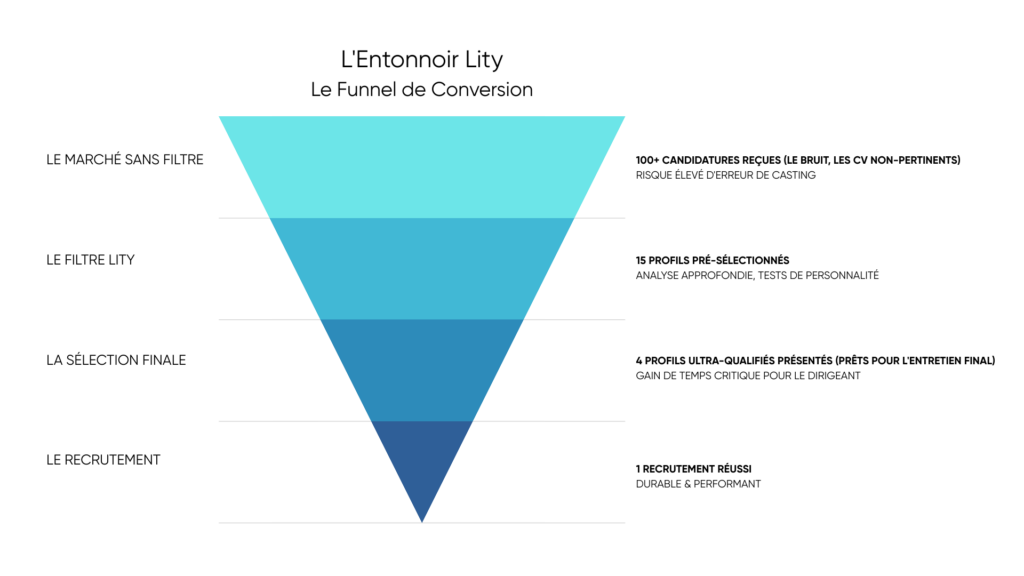 Passer par Lity, c’est s’offrir un accès privilégié à un vivier de talents déjà évalués et pré-sélectionnés. Grâce à notre expertise sectorielle, nous éliminons le temps chronophage du tri pour ne vous présenter que l’excellence. Notre accompagnement est total : de la définition stratégique jusqu’à l’onboarding final de votre collaborateur.