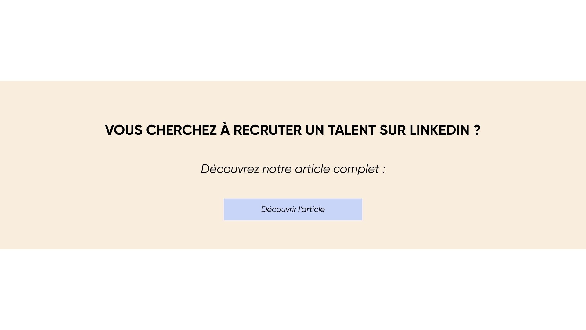 Pour aller plus loin, découvrez comment identifier, approcher et séduire les meilleurs profils directement sur LinkedIn grâce à notre guide complet : Comment recruter un talent sur LinkedIn ?